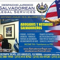 Somos un Despacho de Abogados y Notarios de El Salvador establecidos en la ciudad de Los Angeles Estado de California desde el año 2000 sirviéndole a la. Web Ofrecemos servicios legales confiables de abogado y notario salvadoreño en los Ángeles California. Web Notario Salvadoreño Silver Spring Maryland.